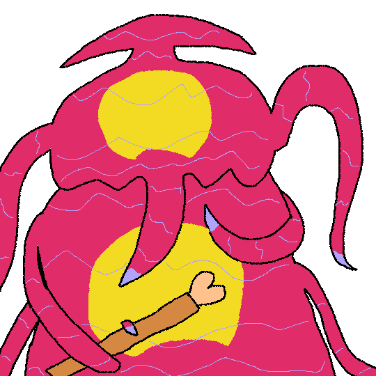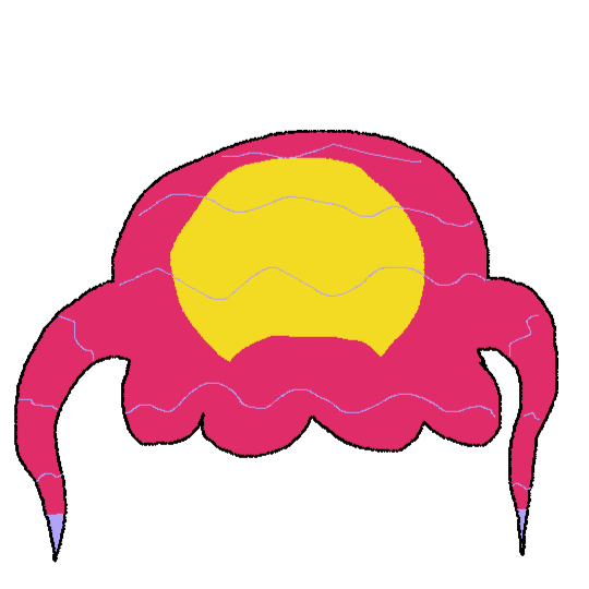 Opening the door reveals a large open space. The roof is similar to a green house and most of the ground is occupied by a pool. Lines of green and purple vegetation are hanging throughout the room. As you are taking in the sights, you are greeted to the same creature that was on the advert: a curvy stack of pink slime-like material with several tentacles. In the center of it's head and chest area was a bright yellow circle, producing a gentle glow. The top of it's head points up akin to a squid's. It holds a staff and extends a tendril towards you, speaking in a welcoming tone.