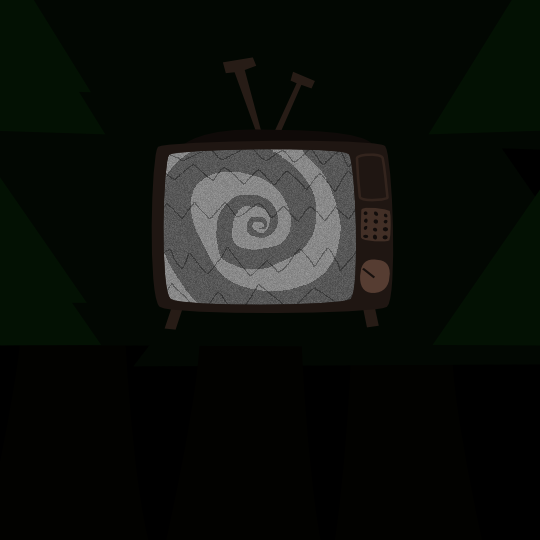 The screen begins to slowly fly backwards. You drag you heavy feet forward to follow. The message seems to fade in and out, making sure you know what to do while still allowing that wonderful spiral some moments to take up the entire screen as it deserves. Forward and forward, the TV leads you. Deeper into the woods, it brings you. You don't pay attention to where. The encompassing noise and visuals is all you can make out. Its all you want to make out. Its all you need to know. The television stops its path, prompting you to stop as well, eager to see its next command.
